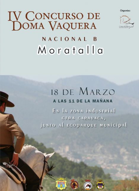 El próximo Domingo 18 de Marzo tendrá lugar el IV Concurso Nacional B de Doma Vaquera en la localidad murciana de Moratalla, organizado por la Asociación Caballista Stmo. Cristo del Rayo.