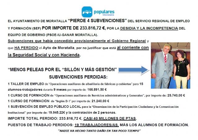 Subvenciones que había concedido provisionalmente el SEF y que HA PERDIDO el Ayto de Moratalla, por no justificar que está al corriente con la Seguridad Social y con Hacienda.
