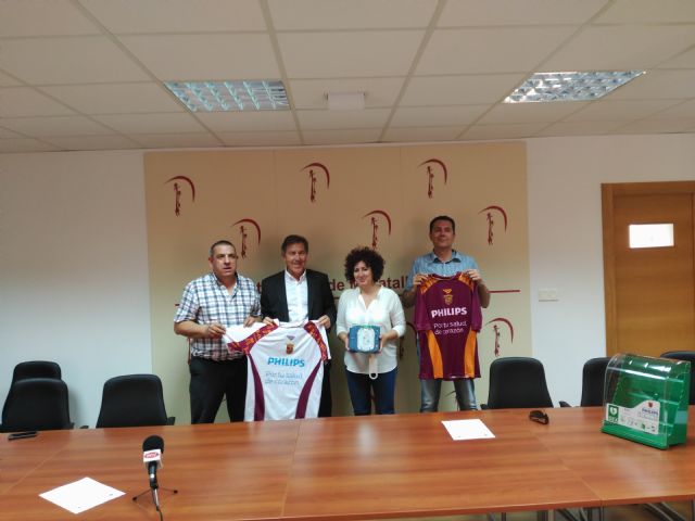 Hoy día 25 de Mayo de 2017 la Federación de Fútbol de la Región de Murcia, la Alcaldesa Candi Marín del Ilmo. Ayuntamiento de Moratalla, el Presidente Antonio Martínez García y Secretario Iván Martínez García del Club de Fútbol de Moratalla, se han reunido hoy en Moratalla para el acto de entrega de 3 desfibriladores.José Miguel Monje, Presidente de la Federación de Fútbol de la Región de Murcia, junto a Ramón Herrero, Vicepresidente de la FFRM, han hecho entrega de 3 desfibriladores Philips a la Alcaldesa Candi Marínque se instalarán en las distintas instalaciones deportivas de la localidad, como son en el campo de fútbol de Moratalla y pabellón municipal Julio Cardozo.