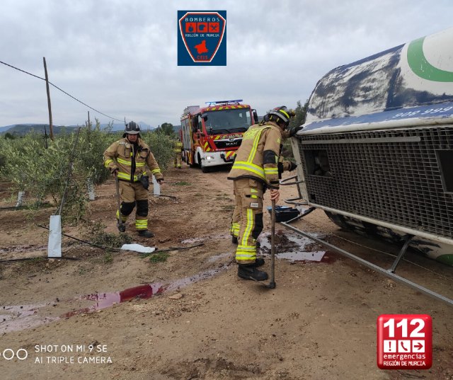 Informa que se ha producido el vuelco de un camión cisterna cargado de gasoil. Tras el vuelco el conductor de la cisterna ha quedado atrapado en la cabina del camíón, posteriormente y tras romper el cristal de la ventana del camión el conductor ha podido salir.