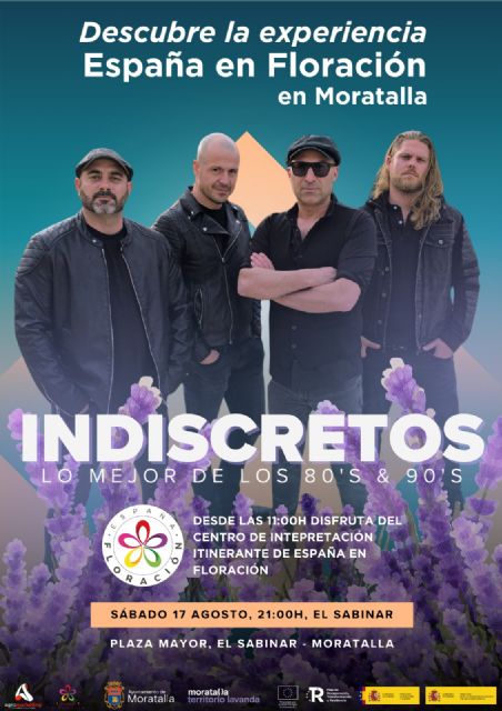 Al anochecer, a partir de las 21 horas, será el turno del grupo de música 'Indiscretos' con versiones de pop y rock de los ochenta y noventa que animará a los asistentes a las actividades del 'Tour Colores y Sabores' en una fiesta para disfrutar de la buena temperatura de las noches de agosto de Moratalla.