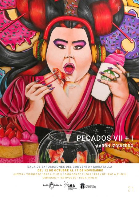El Ayuntamiento de Moratalla ha seleccionado entre los proyectos presentados al Plan EXE el de Aarón Izquierdo, quien ya expuso en este municipio y dentro de esta inactiva en 2018. 'Pecados VII+I' es un conjunto de pinturas de arte pop surrealista y la ilustración fantástica que se pueden disfrutar en la sala de exposiciones del Convento hasta el 17 de noviembre, los jueves y viernes de 18:00 a 21:00 horas, los sábados de 11:00 a 14:00 y de 18:00 a 21:00 horas y los domingos y festivos de 11:00 a 14:00 horas.